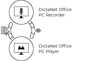 oder die indirekte nachträgliche Transkription bereits abgeschlossener Diktate. - Arbeitsteiliges Arbeiten: DictaNet Office besteht aus dem DictaNet PC Recorder, der Aufnahmestation, und dem DictaNet PC Player,
